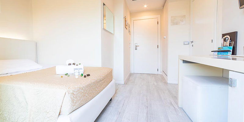Die unterschiedlich ausgestatteten Zimmer bieten den Gästen die Art von Komfort, den sie jeweils bevorzugen. Alle Zimmer des neuen Ferretti Beach Hotel sind schallisoliert, elegant und modern eingerichtet sowie mit hochmoderner Technik und allem Komfort ausgestattet – für Service auf höchstem Niveau. Die Zimmer verfügen unter anderem über Bad/Dusche und WC, TV, Safe, Balkon, Klimaanlage, Fön, Pay-TV, WiFi und Minibar.